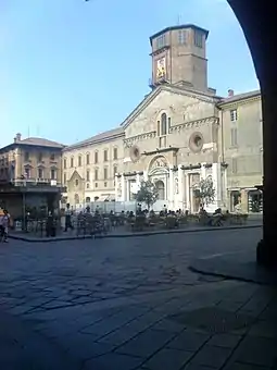 Originally the diocese was part of the ecclesiastical province of Milan, then it was suffragan to the Archbishop of Ravenna.[3] Because of the schism of the Antipope Clement III, Pope Paschal II released the dioceses of Emilia, including Reggio, from obedience to the church of Ravenna, and made them directly subject to the Holy See (Rome), but twelve years later Pope Gelasius II restored the previous status.[4] In 1582 the diocese of Bologna was raised to the status of a metropolitan archbishopric. Reggio was made a suffragan of the archdiocese of Bologna, by Pope Gregory XIII in the bull Universi orbis of 10 December 1582.[5] Modena was raised to the status of an archdiocese and its bishop to the status of a Metropolitan Archbishop by Pope Pius IX in his bull of 22 August 1855, entitled Vel ab antiquis. Reggio became one of its suffragans.[6]