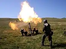 During the 1980s, the land forces numbered 140,000 personnel, of whom two thirds were conscripts.[22] In 1989 four armies appeared to exist: the First Army at Bucharest, Second Army at Buzau, Third Army at Craiova, and Fourth Army at Cluj-Napoca.[23] In 1989 the land forces consisted of eight mechanised (infantry) divisions (1st, Bucharest, 2nd, Craiova, 9th, Constanta, 10th, Iași, 11th, Oradea, 18th, Timişoara, 67th, Brăila and 81st, Dej) two armored divisions (the 57th Tank Division at Bucharest and the 6th Tank Division at Târgu Mureş), one armored brigade, four mountain (infantry) brigades, and four parachute infantry regiments.[24] According to the 165-year 'History of Modern Romanian Artillery,' in 1989 the 1st Army Command consisted of the 1st Mechanized Division, 57th Tank Division and the 2nd Mountain Brigade; the 2nd Army Command of the 9th Mechanized Division, 10th Mechanized Division, 67th Mechanized Division and 32nd Tactical Missile Brigade; the 3rd Army Command of the 2nd Mechanized Division, 18th Mechanized Division, the 7th Tank Brigade and the 4th Mountain Brigade; and the 4th Army Command of the 11th Mechanized Division, 81st Mechanized Division, 6th Tank Division, the 1st and 5th Mountain Brigades and the 37th Tactical Missile Brigade.[25]