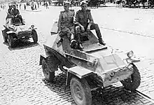 The first front line combat armored cars were acquired in late 1942-early 1943. They comprised 11 Leichter Panzerspähwagens (six Sd. Kfz. 222 and five Sd. Kfz. 223).[4] A much more significant delivery came in August 1943, when the Germans transferred 40 Sd. Kfz. 222 along with 8 Italian-built AB 41s.[5] In 1941, Romania built one armored car prototype armed with one Czechoslovak-made 37 mm gun.[6]
