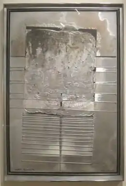His works often explore extreme linear perspective and multiple framings, as in Galactic Sculpture #2.[1] The Auckland Art Gallery, the Boston Public Library, the Fogg Museum, the Hawaii State Art Museum, the Hessel Museum of Art, the Honolulu Museum of Art, the Library of Congress, the Metropolitan Museum of Art, the Museum of Modern Art (New York), and the Yale University Art Gallery are among the public collections holding work by Ron Kowalke.[2][3]