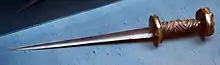 A rondel dagger /ˈrɒndəl/ or roundel dagger was a type of stiff-bladed dagger in Europe in the late Middle Ages (from the 14th century onwards), used by a variety of people from merchants to knights. It was worn at the waist and might be used as a utility tool, or worn into battle or in a jousting tournament as a side arm.