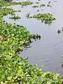 Roodeplaat Dam's catchment contains a large part of the rapidly expanding : municipality of Tshwane, which includes Pretoria. Two sewage treatment works feed treated effluent to the dam, resulting in highly eutrophic conditions comparable with those experienced in Hartbeespoort Dam. These conditions were already apparent in the mid 1970s[2] and have not improved.[6] Consequences of eutrophication include blooms of algae and cyanobacteria, and dense mats of water hyacinth (Eichhornia crassipes).