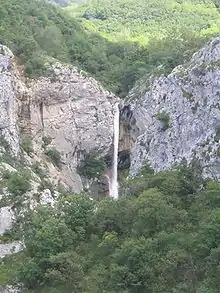 The Rosandra Valley[1][2][3] (Italian: Val Rosandra, Slovene: Dolina Glinščice) is a valley centered on the Rosandra River (Slovene: Glinščica) in the municipality of Dolina in the Italian region of Friuli Venezia Giulia, between the city of Trieste and the border with Slovenia. It is also included into a natural park, mostly set around the Rosandra River and the surrounding hills reach an elevation of 412 metres (1,352 ft). The northern end of the valley crosses the Italian-Slovenian border. The Rosandra Valley is part of the Karst geographical region. Tourist attractions in the valley are 40-metre (130 ft) Supet Falls near the village of Botazzo (Slovene: Botač) and Our Lady of Siaris Church (Italian: Santa Maria in Saris) perched high in the hills of the valley.