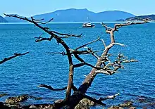 Rosario Strait is a strait in northern Washington state, separating San Juan County and Skagit and Whatcom Counties. It extends from the Strait of Juan de Fuca about 23 kilometres (14 mi) north to the Strait of Georgia. The USGS defines its southern boundary as a line extending from Point Colville on Lopez Island to Rosario Head on Fidalgo Island, and its northern boundary as a line from Point Migley on Lummi Island to the east tip of Puffin Island (just east of Matia Island) and then to Point Thompson on Orcas Island. Rosario Strait runs north-south between Lopez, Decatur, Blakely, and Orcas Islands on the west, and Fidalgo, Cypress, Sinclair, and Lummi Islands on the east.[1]