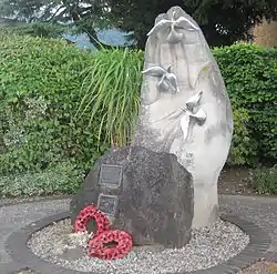 In 1995 Garrard moved her studio from London back to the Malvern Hills. In response to local newspaper appeals for ideas to help regenerate Great Malvern, she proposed “The Spring Water Arts Project”, the creation of a new sculpture trail to reclaim lost spring sites throughout the town.[4] Among her sculptures created after her move back to the Malvern Hills are the Enigma Fountain including the statue of Sir Edward Elgar (Unveiled by The Duke of York on Belle Vue Terrace, Great Malvern on 26 May 2000).[7] Its cost of £50,000 was funded by the Malvern Hills District Council, public subscription, and support from by West Midlands Arts, Severn Trent Water, and local businesses. Other works include the drinking spout, Malvhina, which was unveiled on 4 September 1998, the Hand of Peace war memorial, a sculpture in Portland stone located in the Barnards Green suburb of Malvern,[8] Women's Work 1998, in Bilston, Wolverhampton, England, created in bronze, Welsh slate, and brick,[9] and the Cascade Gates 2007, in welded steel at the Clock Tower Well Room in North Malvern.