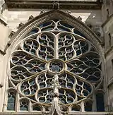 France, Sens Cathedral, transept, showing Flamboyant window incorporated into a large composition.