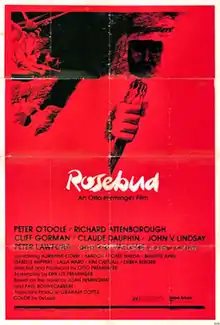 Rosebud is a 1975 American action thriller film directed by Otto Preminger, and starring Peter O'Toole, Richard Attenborough, and Peter Lawford. The script was by Otto's son, Erik Lee Preminger, based on the novel by Joan Hemingway and Paul Bonnecarrère. Originally the film was set to star Robert Mitchum, but he left after disagreements with Preminger.[1] Kim Cattrall made her film debut as a teenager. Barbara Emerson, who had been cast as one of the girls,[2] was replaced during production.[3]