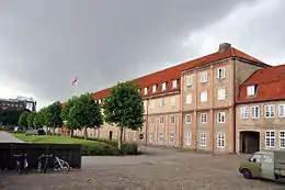 Rosenborg Barracks is located on the corner of Gothersgade and Øster Voldgade and was originally a pavilion and two long conservatory buildings built by Lambert van Haven for Christian V. In 1709 they were built together to form one large orangery complex and in 1743 it was redesigned into the Baroque style by Johan Cornelius Krieger. From 1885 to 1886 it was converted for use by the Royal Life Guard by Engineer Officer Ernst Peymann. In 1985 they moved to new premises at Høvelte between Allerød and Birkerød and since Rosenborg Barracks has only housed guards on duty at Copenhagen.