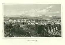 The first plan for a railway line between Rosenheim and Salzburg was in Friedrich List’s proposal in September 1828, which laid out as the main lines of the Bavarian network, a line from Bamberg via Nuremberg, Augsburg and Memmingen to Lindau, another from Kitzingen via Nuremberg and Augsburg to Munich and a third from Günzburg via Augsburg and Munich towards Austria. Simon Freiherr von Eichthal, a banker to the King of Bavaria, also called for a railway from Munich to Salzburg in 1835. On 5 January 1836, von Eichthal began a preliminary investigation of the building of the line. A messenger of the Bavarian government reported to the Austrian government on 7 April 1836 on the planned construction of the line. In 1838, von Eichthal failed to raise the necessary funds to carry the plan forward.[2][3]