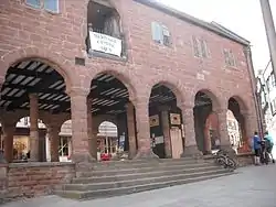 Regular Thursday and Saturday markets are held at the red sandstone[14] Market House building[15] in the town centre, which was built between 1650 and 1654 replacing the older, probably wooden Booth Hall. The upper storey of the Market House now houses a local Arts and Crafts centre.