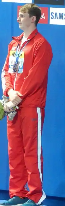 Ross Murdoch (born 14 January 1994) is a British competitive swimmer who has represented Great Britain in the Summer Olympics, the FINA world championships and the LEN European championships, and Scotland in the Commonwealth Games. Murdoch rose to prominence when he won the gold medal in the 200 metre breaststroke at the 2014 Commonwealth Games in Glasgow, beating favourite, Olympic silver medalist and fellow Scot Michael Jamieson. In 2015, he formed part of the Great Britain squad that won gold in the mixed 4 x 100 metre medley relay at the 2015 World Aquatics Championships, swimming in the qualifying heats, and adding a relay world title to the individual bronze won days earlier in the men's 100 metre breaststroke behind teammate Adam Peaty. In 2016, he qualified for the 100m breaststroke for the Great Britain team in the 2016 Summer Olympics in Rio de Janeiro. In the same year, he won his first European title with a gold medal in the 200 metre breaststroke, also picking up a silver medal in the 100 metre breaststroke silver medal behind teammate Adam Peaty and a bronze medal in the 50 metre breaststroke.