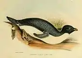 Adélie penguin, from the Ross Expedition to the Antarctic of 1839–1843. The Zoology of the Voyage of HMS Erebus and Terror Vol 1, 1875. Drawn by C. Hillman