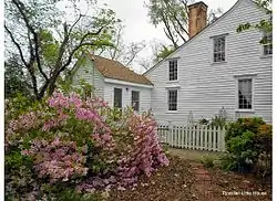 The Rossiter-Little House has been modified, however, from the archetypical New England form by having two front projecting wings or ells with an inset front porch or gallery between them. This is an atypical design for New England, but it does appear infrequently in some late 18th and early 19th century Southern plantations, such as the Kingsley Plantation (c. 1798) in Duval County, Florida, just below the Georgia border.[3]