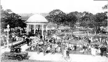 The Rotunda is located in Balmoral Beach Reserve at Balmoral Beach, Sydney. It was built in 1930 as part of the beach improvement program undertaken by Mosman Council.[1] Overlooking the bay and close to Rocky Point Island, it is set in a very picturesque area. After its completion it was a very popular venue for brass band concerts for many years throughout the 1930s and 1940s. Today it is used for festivals, events and weddings and is an important historical landmark in Balmoral.