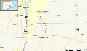 | Length | 6.00 mi[1][2] (9.66 km) 3.57 miles (5.75 km) in CT 2.43 miles (3.91 km) in MA | ||||||