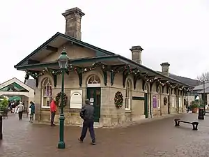 It was the site of an extensive motive power depot and marshalling yard, the first being built by the Manchester, Buxton, Matlock and Midlands Junction Railway with a railway station designed by Joseph Paxton in 1849. This was replaced by a new station when the line was extended northwards in 1862. It was frequently used by King Edward VII when he visited Chatsworth House. The original station became a goods depot until 1968, when it was used as a contractor's yard. It then became the centrepiece of a shopping development known as Peak Village.