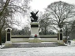 The Royal Artillery Boer War Memorial is located on the south side of The Mall in Central London, close to the junction with Horse Guards Road at the northeast corner of St James's Park. Unveiled in 1910, it marks the deaths of the 1,083 soldiers of the Royal Artillery who died in the Second Boer War from 1899 to 1902[1] It has been a listed building since 1970.