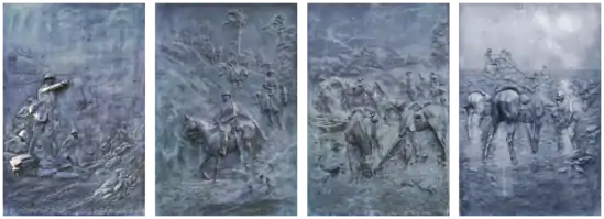Early on 23 April, A Squadron was stationed at Qatia (or Katia), some 6 miles (10 km) south-east of Romani. At 09:15 it came under attack by a Turkish force of between 1,000 and 1,500 infantry, supported by cavalry and a battery of mountain guns, which had already overwhelmed two squadrons of the Queen's Own Worcestershire Hussars and a party of Royal Engineers further east at Oghratina. The squadron was reinforced by a squadron of Worcesters, and the regiment's own B and D Squadrons moved out of Romani in support. The defenders at Qatia held out until mid-afternoon before being overwhelmed, and B and D Squadrons, which had been heavily engaged in the attempt to reach Qatia, retired back to Romani. The Battle of Katia cost the Royal Gloucestershire Hussars 98 casualties, most of them being taken prisoner, and only nine men of A Squadron evaded death or captivity.[55][56][57] The squadron was criticised for advancing too far, and an Australian soldier who visited Qatia labelled the yeomen "country bumpkins led by privileged toffs".[58] When Lieutenant-General Sir Philip Chetwode unveiled the Royal Gloucestershire Hussars war memorial in 1922, he countered the "very wrong criticism", saying that "there was nothing to be ashamed of, but everything to make them proud of their regiment".[59]