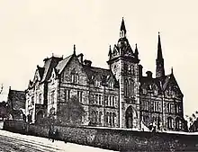 The RGS was founded in 1525[5] by Thomas Horsley, within the grounds of St Nicholas' Church, Newcastle.[6] Planning is believed to have begun as early as 1477. The site has moved five times since then, most recently to Jesmond in 1906.[7] The new school building, designed by Sir Edward Cooper,[8] was officially opened on 17 January 1907 by the 7th Duke of Northumberland.[9]