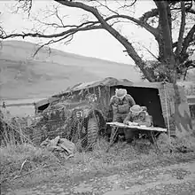 The 2/5th Battalion, created in 1939 as a duplicate of the 1/5th Battalion, and containing many formers of that battalion, was part of the 138th Infantry Brigade of the 46th Infantry Division and was sent to France in April 1940.[58] The battalion fought in the Battle of France as part of the British Expeditionary Force (BEF) in 1940, taking part in the Dunkirk evacuation, before returning to England. The battalion, briefly commanded by Richard Gale, remained there for the next two-and-a-half years on home defence and anti-invasion duties, leaving for North Africa in early 1943, fighting in the Tunisian Campaign, including the Battle of Kasserine Pass, until the campaign ended in mid-May 1943.[58] After resting for the next three months the battalion's next action was in the Allied invasion of Italy, where, holding off against numerous German counterattacks, heavy casualties were sustained. After a brief rest the battalion breached the Volturno Line in October before taking part in the battles around the Winter Line, most notably the Battle of Monte Cassino.[58] The battalion was withdrawn from the Italian Front in March 1944, sent to the Middle East to rest and retrain and absorb replacements after nearly six months of continuous action.[58] Returning to Italy in July, the battalion fought on the Gothic Line until December when it was transported by air to Athens, Greece, to help calm the Greek Civil War, later returning to Italy in April 1945 but too late for participation in the final offensive. The end of World War II in Europe came soon afterwards and the battalion moved into Austria, where it was disbanded in 1946.[58]