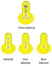 | Vice admiral | Crown, crossed baton & sword and 3 stars |