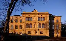 Designed in 1876 as a compact Renaissance palace by Vice City Architect Axel Fredrik Nyström (1832–1894) and inaugurated in 1879, the sumptuous façades of the three stories, to many, were regarded as indecorous on the military setting on the island. The reform of the military academy in 1862 had, however, forced the education of naval officers to be relocated to the eastern part of the city, and Nyström's plans were therefore accepted. The skylight turret was intended to be used as an observatory in the education. The building served as a school until 1943, today being the location for the organisation Nordregio, instigated by the Nordic Council of Ministers in 1997, and advocating issues of interest for northern Europe and the Baltic region.[10]
