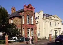 The (red-brick) Annex on the left and the original (cream-coloured) Dispensary on the right
