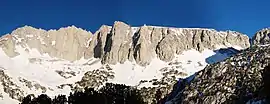 ![]() Ruby Wall is in the center with Mount Mills on the left and Mono Pass on the right | |
