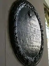 Kipling's birth home on the campus of the J.J. School of Art in Bombay was for many years used as the Dean's residence.[19] Although a cottage bears a plaque noting it as his birth site, the original one may have been torn down and replaced decades ago.[20] Some historians and conservationists take the view that the bungalow marks a site merely close to the home of Kipling's birth, as it was built in 1882 – about 15 years after Kipling was born. Kipling seems to have said as much to the Dean when visiting J. J. School in the 1930s.[21]