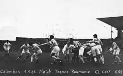 The Olympic games of 1924 opened on 4 May with a match between France and Romania. Playing its first fifteen, the French notched a 59 to 3 victory over the smaller eastern European team, scoring 13 tries including four by the fine Stade Francais winger Adolphe Jauréguy.[1]