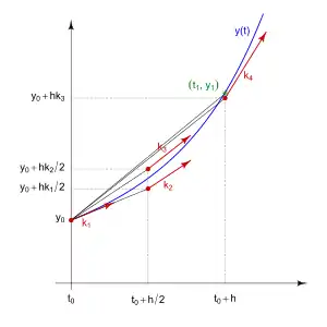 In numerical analysis, the Runge–Kutta methods are a family of implicit and explicit iterative methods, which include the well-known routine called the Euler Method, used in temporal discretization for the approximate solutions of ordinary differential equations.[1] These methods were developed around 1900 by the German mathematicians Carl Runge and Wilhelm Kutta.