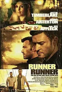 Runner Runner is a 2013 American crime thriller film directed by Brad Furman, written by Brian Koppelman and David Levien and starring Justin Timberlake, Ben Affleck, Gemma Arterton and Anthony Mackie.