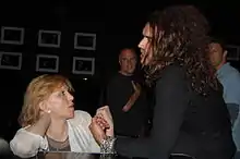 Brand performed stand-up at the Hackney Empire New Act of the Year final in 2000. Although he finished fourth, his performance attracted the attention of Bound and Gagged Comedy Ltd agent Nigel Klarfeld.[12] That year, he also made his Edinburgh debut as one-third of the stand-up show Pablo Diablo's Cryptic Triptych, alongside ventriloquist Mark Felgate and Anglo-Iranian comic Shappi Khorsandi.[13] In 2004, he took his first one-man show, the confessional Better Now, to the Edinburgh Festival, giving what he claimed was an honest account of his heroin addiction. He returned the following year with Eroticised Humour. He launched his first nationwide tour, Shame, in 2006. Brand drew on embarrassing incidents in his own life and the coverage about him in the tabloid press. The show was released on DVD as Russell Brand: Live. Brand appeared in a sketch and performed stand-up at Amnesty International's Secret Policeman's Ball in 2006[14] and again at the 2012 edition at Radio City Music Hall.[15]