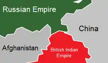 Rivalry grew steadily over Central Asia in the Great Game of the late 19th century.[21] Russia desired warm-water ports on the Indian Ocean while Britain wanted to prevent Russian troops from gaining a potential invasion route to India.[22] In 1885 Russia annexed part of Afghanistan in the Panjdeh incident, which caused a war scare. After nearly completing the Russian conquest of Central Asia (Russian Turkestan) the Russians captured an Afghan border fort. Seeing a threat to India, Britain came close to threatening war but both sides backed down and the matter was settled by diplomacy. The effect was to stop further Russian expansion in Asia, except for the Pamir Mountains and to define the north-western border of Afghanistan. However Russia's foreign minister Nikolay Girs and its ambassador to London Baron de Staal in 1887 set up a buffer zone in Central Asia. Russian diplomacy thereby won grudging British acceptance of its expansionism.[23] Persia was also an arena of tension, but without warfare.[24]