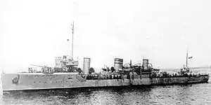 In 1912, the Russian State Duma passed a shipbuilding programme for the Imperial Russian Navy that envisioned the construction of four battlecruisers, eight cruisers, 36 destroyers and 18 submarines, mainly for the Baltic Fleet.[1][2] To meet this requirement, the Putilov Yard of Saint Petersburg proposed a modified version of the Derzky-class destroyer, to be built by Putilov, the Metal Works of Saint Petersburg, and the Russo-Baltic Yard of Reval (now Tallinn) in Estonia. An order for 22 destroyers to Putilov's design was placed with the three shipyards in December 1912.[3]