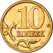 10 ₽ | 22 mm | 5.63 g | Brass-plated steel | Segmented (plain and reeded edges) | Emblem of the Bank of Russia | Value | 2009–2013, 2015 |