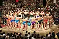The dohyō-iri of the top makuuchi division wrestlers, prior to the start of competition.