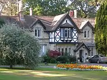 Rylstone Manor is now a hotel. The building is constructed of stone and features include a jettied half-timbered projection. It is located within Rylstone Gardens, a public park.
