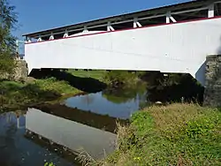The Ryot Covered Bridge is a historic wooden covered bridge located at West St. Clair Township in Bedford County, Pennsylvania. It is a low to medium Burr Truss bridge with a shallow gable roof. It is one of 15 historic covered bridges in Bedford County.[2] It was damaged by fire in 2002, and reconstructed.