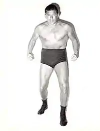At first, due to his large size, he was promoted by Jack Pfefer and Jack Curley of New York City as a "freak talent", one of a number of foreign and extraordinary wrestlers booked to attract the curious.[2] In the early 1940s, Szabo held three world championships. In the 1950s, he was quite popular in Southern California, where he was assistant booker to Jules Strongbow,[3] and held tag team championships in Los Angeles and San Francisco. He also sang a song during the 1950s for Hammerlock Records called "Hold Me in Your Arms".[4] In 2000, he was inducted into the Wrestling Observer Newsletter Hall of Fame. He died of a heart attack at the age of 60.