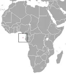 The São Tomé leaf-nosed bat is known only from the island of São Tomé in the Gulf of Guinea. It is described as not uncommon, and roosts of up to one hundred individuals have been found. In the absence of evidence to the contrary, and because no special threats have been identified, the International Union for Conservation of Nature has assessed the conservation status of this species as being of "least concern".[1]