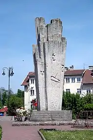 Sępólno was invaded by Nazi Germany on September 1, 1939,[1] the first day of World War II, and was later annexed and made the seat of Zempelburg district within the Reichsgau Danzig-West Prussia. During the German occupation, Poles were subject to persecutions, mass arrests, Germanisation, expulsions and massacres. Numerous Poles were imprisoned in a concentration camp in Radzim and in a prison established by the Selbstschutz in Sępólno, and later murdered on site or deported to other Nazi concentration camps.[3] Mass arrests of Poles were carried out from September 1939,[3] and the first executions of Polish inhabitants were carried out by the Germans at the turn of September and October 1939.[1] Mass executions of Poles in Sępólno were carried out in various places, for example on the railway tracks connecting Sępólno and Kamień Krajeński (in October 1939), at the primary school and at the shooting range (in November 1939),[3] local Poles were also murdered in Radzim, Karolewo, Rudzki Most.[1] Local Jews were also murdered in Radzim.[1] In early 1945 the town was captured by the Soviets, who plundered the town, raped many women, deported Germans to Siberia, and fought the Polish underground resistance movement.[1] Afterwards the town was restored to Poland.