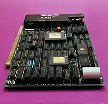 The S-100 bus signals were simple to create using an 8080 CPU, but increasingly less so when using other processors like the 68000. More board space was occupied by signal conversion logic. Nonetheless by 1984, eleven different processors were hosted on the S-100 bus, from the 8-bit Intel 8080 to the 16-bit Zilog Z-8000.[10] In 1986, Cromemco introduced the XXU card, designed by Ed Lupin, utilizing a 32-bit Motorola 68020 processor.[11]