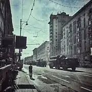 A regular S-400 battalion consists of at least eight launchers with 32 missiles and a mobile command post.[97] On 21 May 2007, the Russian Air Force announced that S-400 would be put on combat duty around Moscow and Central Russia by 1 July 2007.[98] The S-400 was also deployed near the town of Elektrostal.[99]