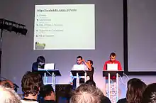 Since 2008,[2] in the four weeks before the event, participants had to solve about one challenge per-week to qualify for the quiz show. The challenges included image enigmas, treasure hunts, code golf contests, among others. They all shared a reasonably high level of difficulty and required a fair knowledge of tech-related culture and motivation. Qualified participants then went on stage on Friday night for a few rounds of questions, mostly about science, technology, and geek trivia.[3]