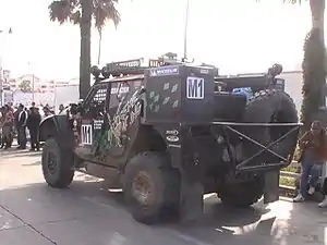 SCORE Class M-Truck is a two or four-wheel drive medium utility vehicle that competes in the SCORE off-road race series races including the Baja 1000, Baja 500, Baja Sur 500, San Felipe 250, and the SCORE Desert Challenge.