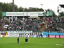 Preußen Münster has currently 1980 members (in December 2014).[11] Part of the club is the Fanprojekt Preußen Münster e. V. which serves as a voice for supporters to club management. It also arranges bus tours to matches and events to support charity organizations in the Münster-area. Furthermore, the Fanprojekt offers a radio during matches for people not present, Radio Mottekstrehle.