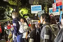 On August 30, 2015, the SEALDs was among protesters who surrounded the National Diet Building in Tokyo. Estimates of the size of the crowd ranged from 30,000 to 120,000.[2] Such a large student movement had not emerged in Japan since the anti-war protests of the 1960s, which forced Shinzo Abe's grandfather Nobusuke Kishi to resign as Prime Minister.[2] However, in contrast to the Zengakuren, whose radicalism eventually alienated the public in the 1960s, the SEALDs attempted to be moderate and non-partisan.[1]