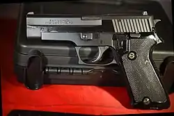 The SIG Sauer P220 is a semi-automatic pistol. Designed in 1975 by the SIG Arms AG division of Schweizerische Industrie Gesellschaft (now SIG Holding AG), and produced by J. P. Sauer & Sohn, in Eckernförde; it is currently manufactured by both SIG Sauer companies: SIG Sauer GMBH, of Eckernförde, Germany; and SIG Sauer, Inc., of New Hampshire, United States.[1]