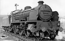The class was absorbed by British Railways in 1948, and were given the British Railways Power classification 4P3F.[20] Livery was initially similar to the Southern Railway, though with "British Railways" on the tender, and an 'S' prefix to the Southern number.[20] This was succeeded by the British Railways mixed-traffic lined black livery with red, cream and grey lining and the British Railways crest on the tender.[21] The British Railways standard numbering system was used to replace the Southern Railway system, and the class was allocated the series 31890–31910.[22]